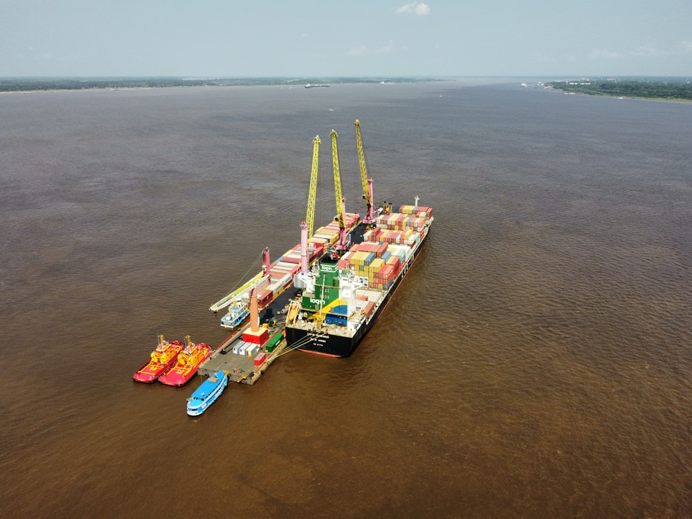 Esta semana, teve início a operação ‘Chibatão em Movimento’ no Píer Flutuante Provisório do grupo Chibatão, localizado em Itacoatiara, a 270 quilômetros de Manaus por via terrestre. A ação começou com a atracação do navio Log-In Jacarandá, que chegou carregado com 1.032 contêineres.durante essa operação,360 contêineres foram transferidos para balsas,representando um avanço importante para a logística no Amazonas e garantindo o fluxo contínuo de mercadorias essenciais mesmo diante da estiagem severa que afeta a região.
