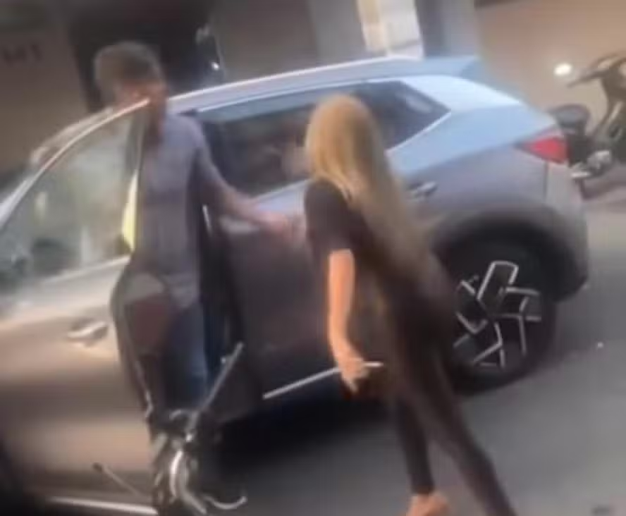 No vídeo, a esposa diz que está casada com ele há seis anos e o identifica para quem passa no local, afirmando que o carro do tipo SUV que ele está usando é da prefeitura.